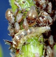| Predatory or parasitic animal | Parasitic wasp (natural enemy) | Hover fly larva (natural enemy) |
