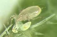 | Mite Phytoseiulus longipes a predator of the tobacco spider mite (real size-1mm). |