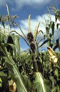 Partial infection by head smut fungus (Sphacelotheca reiliana) of the tassel of maize