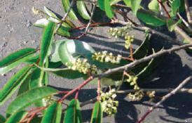 Flowers: Sprays on stalks about 8 cm long, very small, fragrant, green-white.