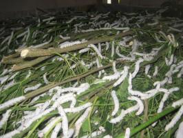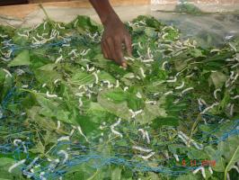 1st stage (1st Instar) - the young worms should be fed with young tender leaves; 2nd and 3rd leaves from the tip of the shoot. These are chopped into small pieces and fed to worms for 4 days at least twice a day in the morning and late afternoon. After the 4 days the worms go into moult (sleep).
