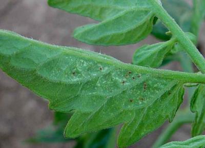 Inspecting your field regularly is very important, since the population build up of the mites is very rapid. At the beginning of the infestation the distribution of mites is very patchy. Control must start early. It is very difficult to control the mite population once they are established. A recommended monitoring method for mites on tomato is: Select randomly 20 tomato plants and access the level of damage caused by the mites of 3 leaflets/plant by using a damage leaf index ranking from 1 to 5 (1 is few yellow spots, 5 is leaf totally covered with spots, dry patches occur). Once the average damage level exceeds the first rank, control measures should start.