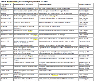 Table 1: Biopesticides (biocontrol agents) available in Kenya