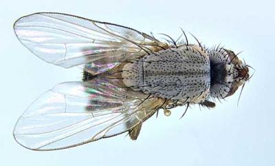 Shoot fly (Atherigona soccata) The adults are dark brown, and similar to a housefly, but nearly half the size.