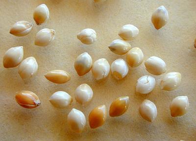 Lesser grain borer (Rhyzopertha dominica). Adults are 2-3 mm in length and reddish-brown in colour (shown on wheat grains).