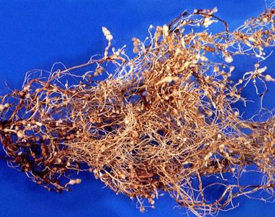 Root-knot nematode (Meloidogyne exigua) damage on coffee root system