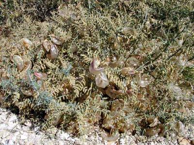 Sutherlandia frutescens bush with fruit The fruit, which are inflated pods, become pale brown and papery when ripe and accumulate under and on the bush in large numbers.