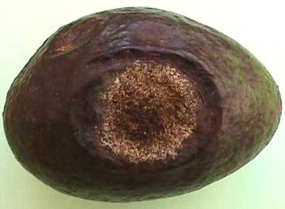 Anthracnose on avocado fruit. Anthracnose (Colletotrichum gloeosporioides) on avocado fruit. This fungal disease is primarily a post-harvest problem when fruit is at maturity stage.