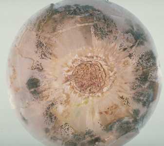 Onion smudge. Small, round, dark blotches develop on bulbs, with a zonate pattern on the outer scale leaves.