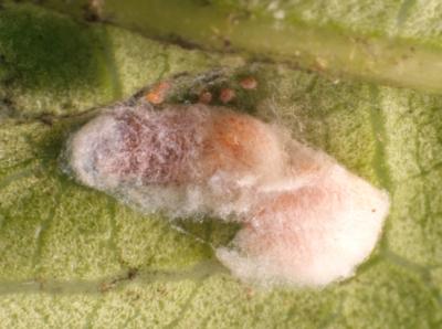 Citrus mealybug (Planococcus citri). Mealybug parasitised by Leptomastix dactylopii wasp.