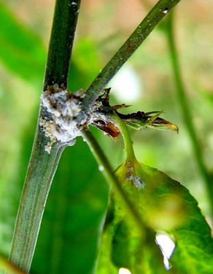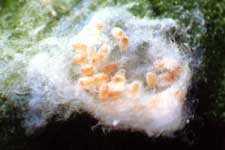 Mass of mealybugs on passion fruit.