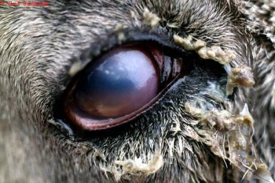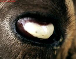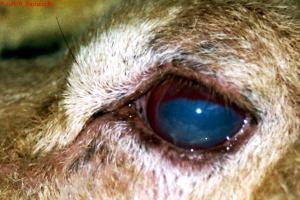 The infection occurs in animals of all ages but is more severe in young animals. The disease is generally less severe in sheep and goats. One or both eyes may be affected.