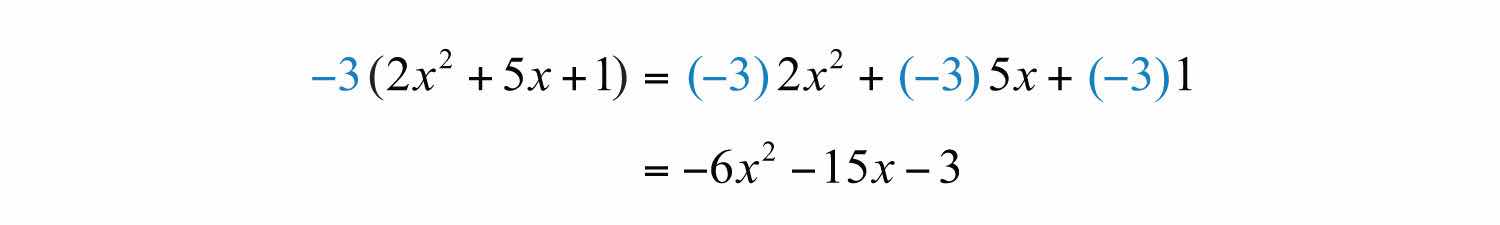 Solution: Multiply −3 times each of the coefficients of the terms inside the parentheses.