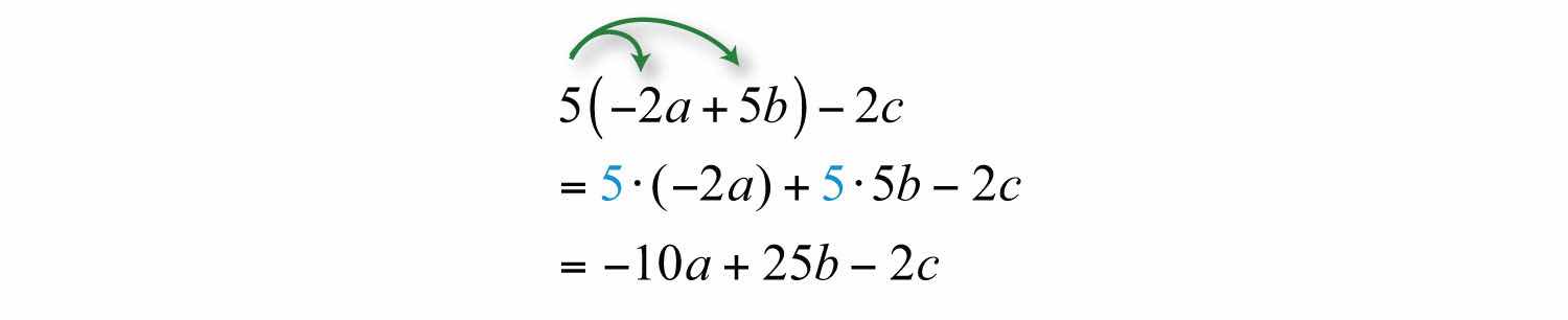 Solution: Apply the distributive property by multiplying only the terms grouped within the parentheses by 5.
