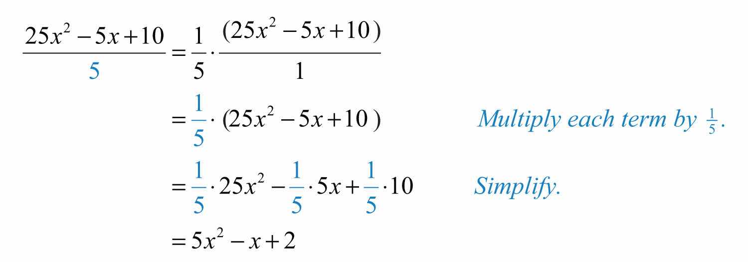 Alternate Solution: Think of 5 as a common denominator and divide each of the terms in the numerator by 5: