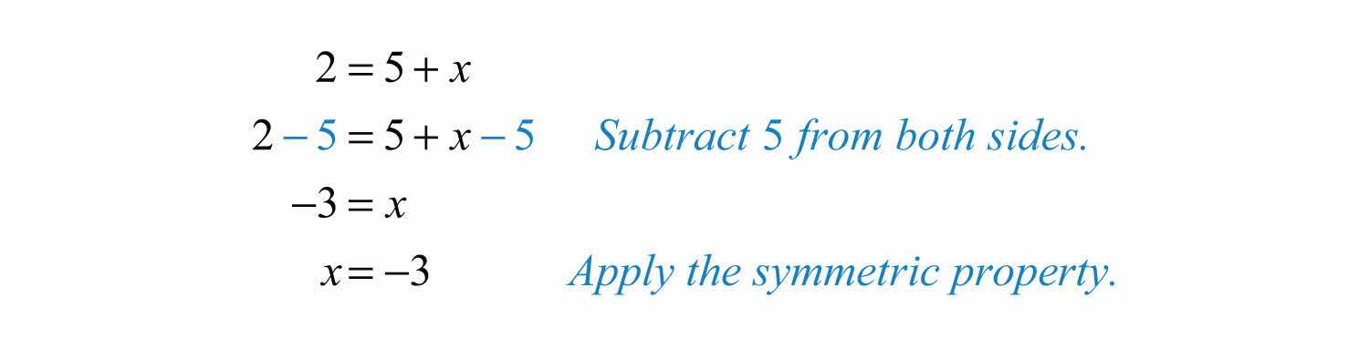 Another important property is the symmetric propertyAllows you to solve for the variable on either side of the equal sign, because is equivalent to .: for any algebraic expressions A and B,
