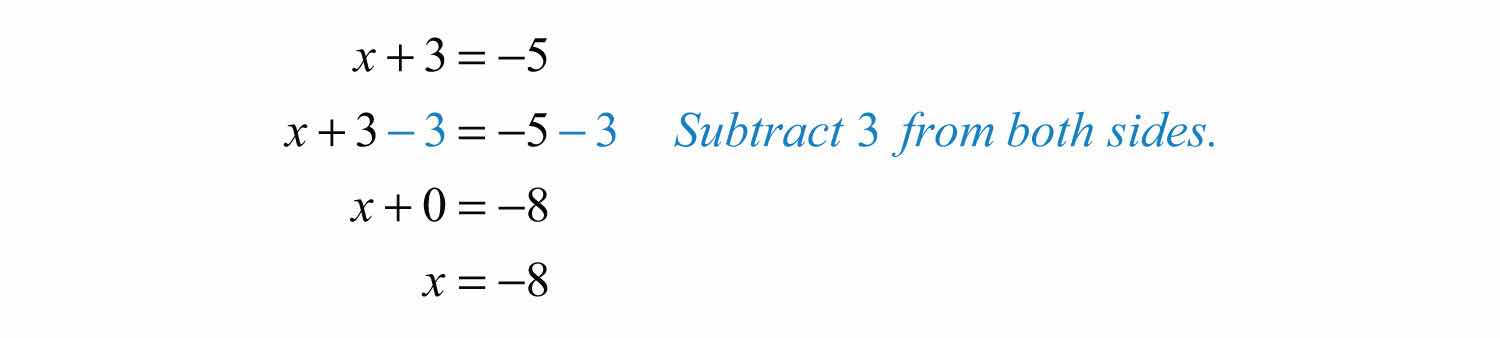 Solution: To isolate the variable x on the left side, subtract 3 from both sides.