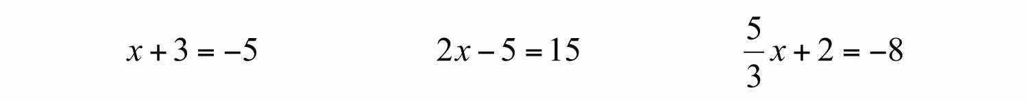A linear equation of the form takes two steps to solve. First, use the appropriate equality property of addition or subtraction to isolate the variable term. Next, isolate the variable using the equality property of multiplication or division. Checking solutions in the following examples is left to the reader.