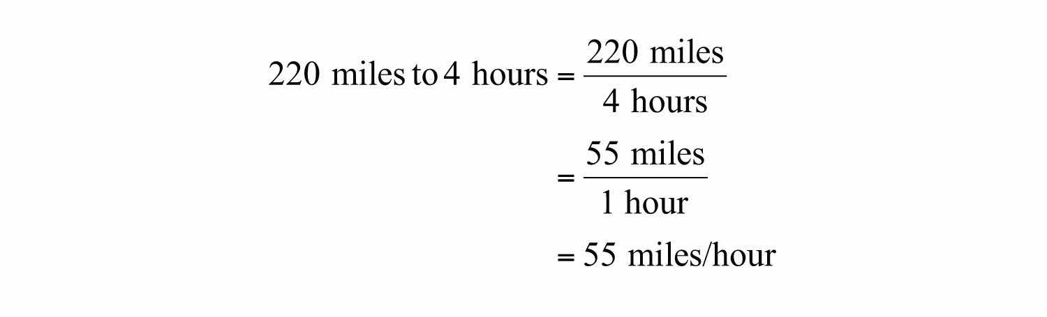 Example 2: Express the ratio 220 miles to 4 hours in reduced form.