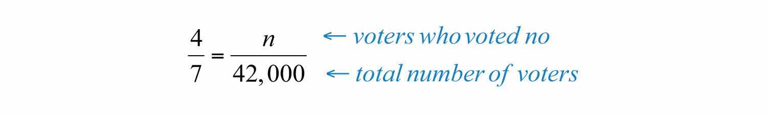 Example 8: In Tulare County, 3 out of every 7 voters said yes to Proposition 40. If 42,000 people voted, how many said no to Proposition 40?
