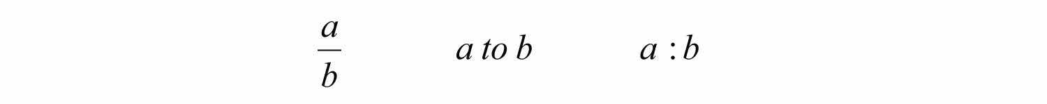 A ratioRelationship between two numbers or quantities usually expressed as a quotient. is a relationship between two numbers or quantities usually expressed as a quotient. Ratios are typically expressed using the following notation: