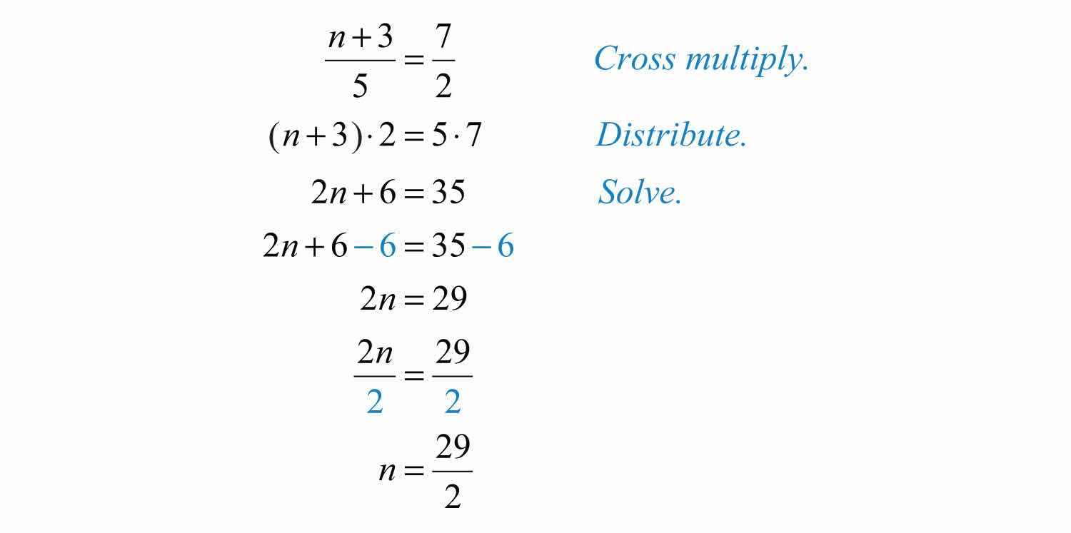 Solution: When cross multiplying, be sure to group . Apply the distributive property in the next step.