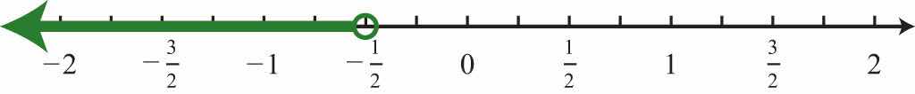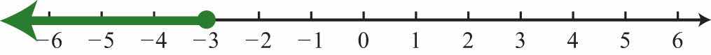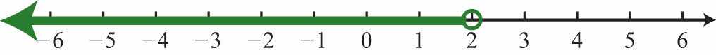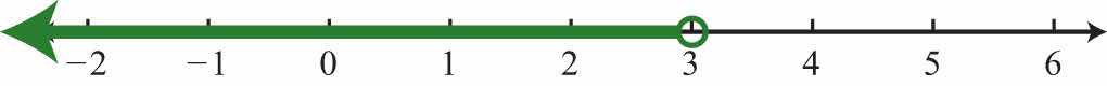Solution: Use an open dot at 3 and shade all real numbers strictly less than 3. Use negative infinityThe symbol (−∞) indicates the interval is unbounded to the left. (−∞) to indicate that the solution set is unbounded to the left on a number line.