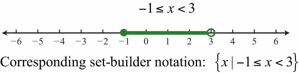 Write bounded intervals, such as , as , which is read “the set of all real numbers x such that x is greater than or equal to −1 and less than 3.”