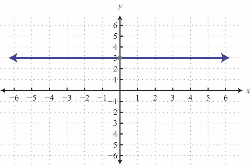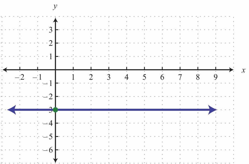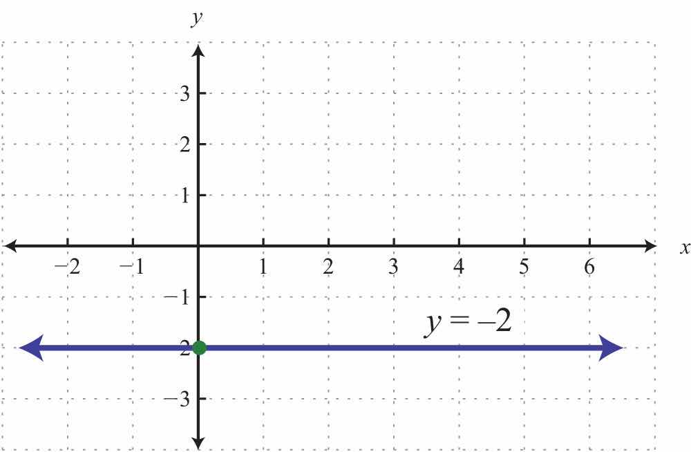 The horizontal line graphed above has a y-intercept of (0, −2) and no x-intercept.