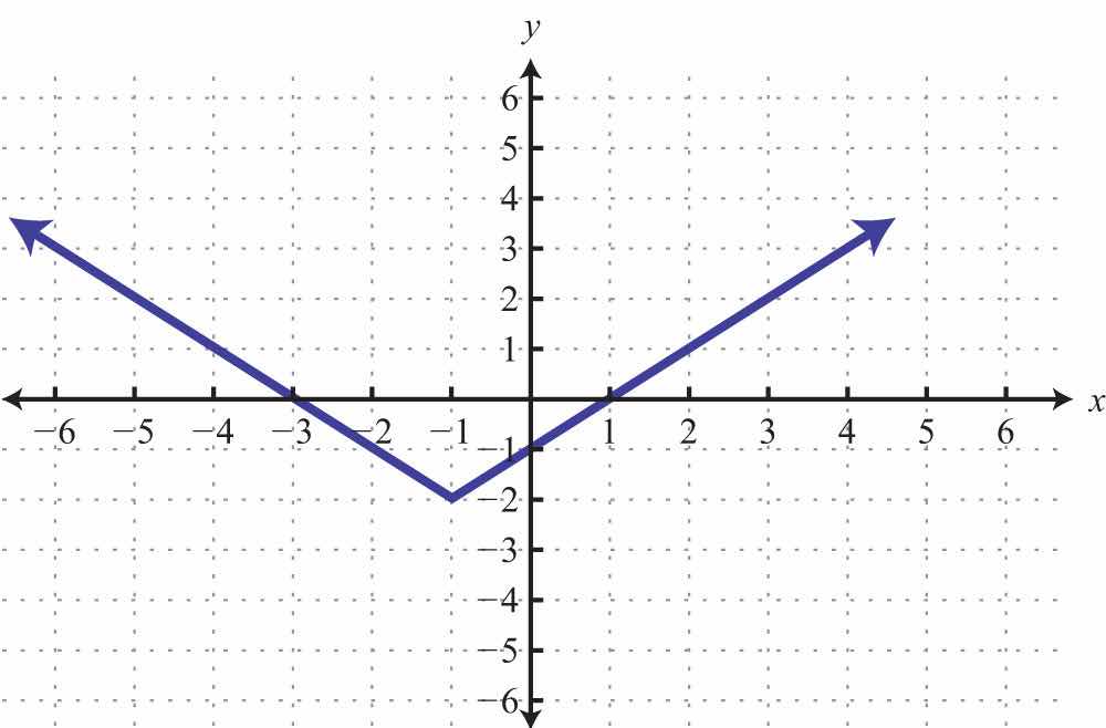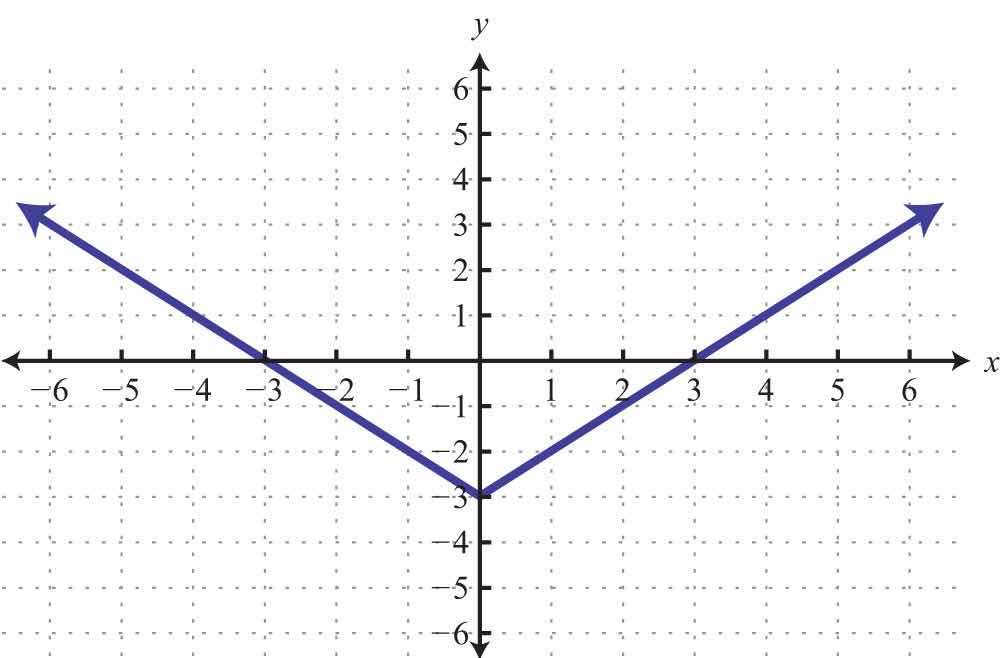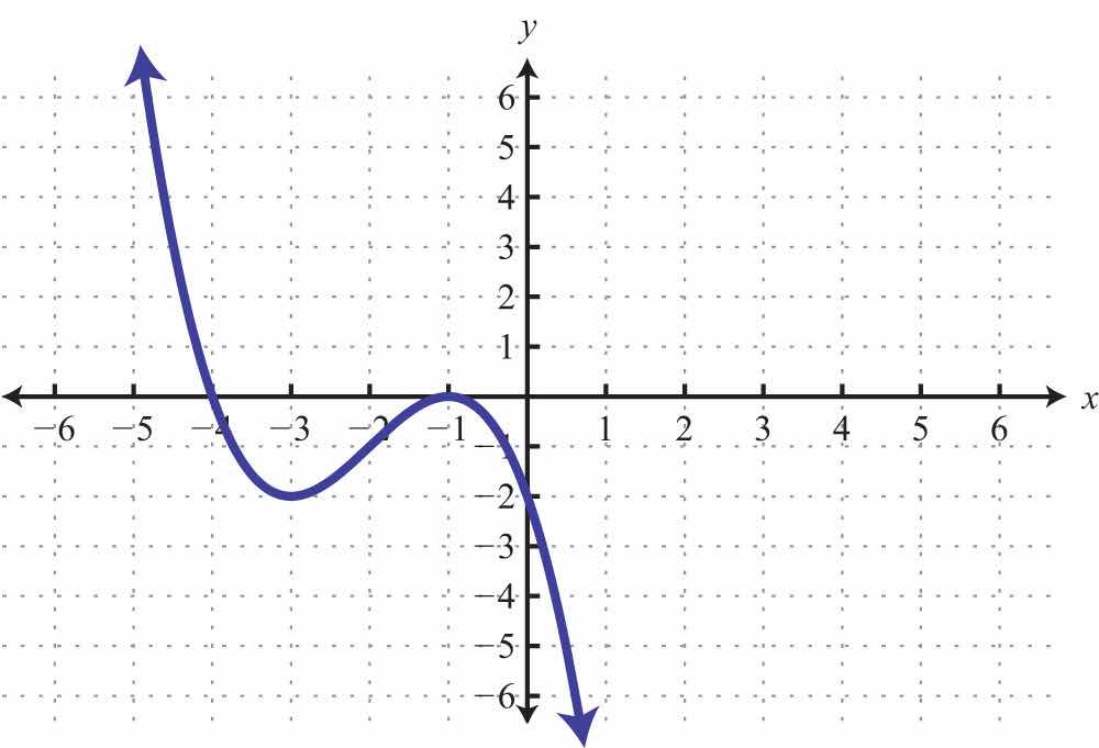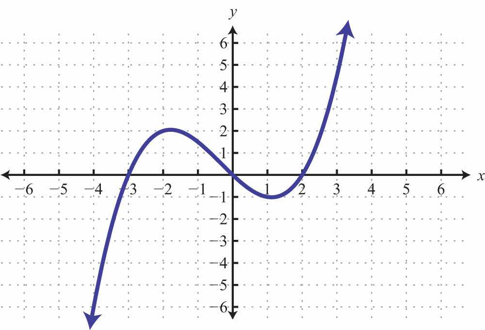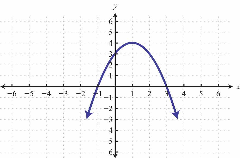 Solution: We see that the graph intersects the x-axis in two places. This graph has two x-intercepts, namely, (−4, 0) and (2, 0). Furthermore, the graph intersects the y-axis in one place. The only y-intercept is (0, −3).