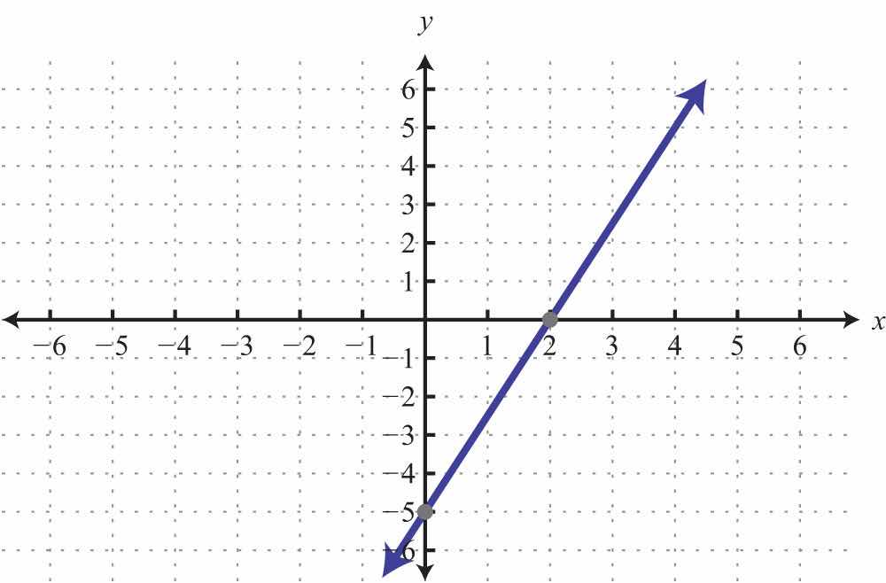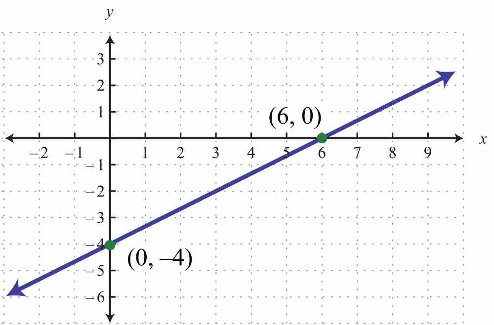 The x-interceptThe point (or points) where a graph intersects the x-axis, expressed as an ordered pair (x, 0). is the point where the graph of a line intersects the x-axis. The y-interceptThe point (or points) where a graph intersects the y-axis, expressed as an ordered pair (0, y). is the point where the graph of a line intersects the y-axis. These points have the form (x, 0) and (0, y), respectively.