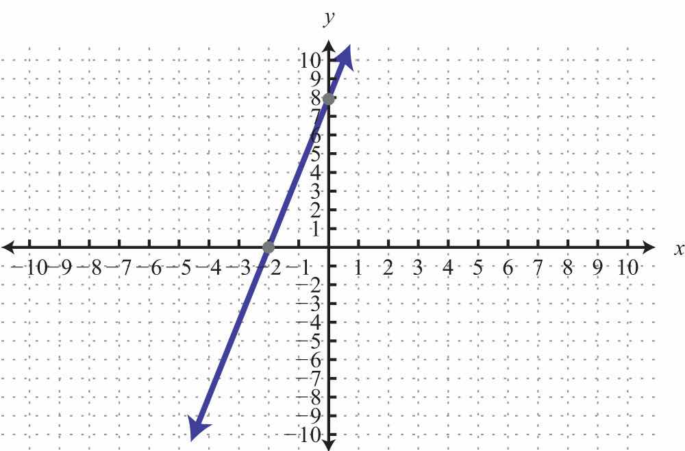 Therefore, the x-intercept is (−4, 0). To find the y-intercept, set x = 0.