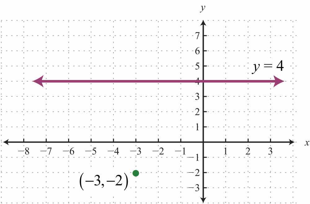Solution: We recognize that is a horizontal line and we want to find a perpendicular line passing through (−3, −2).