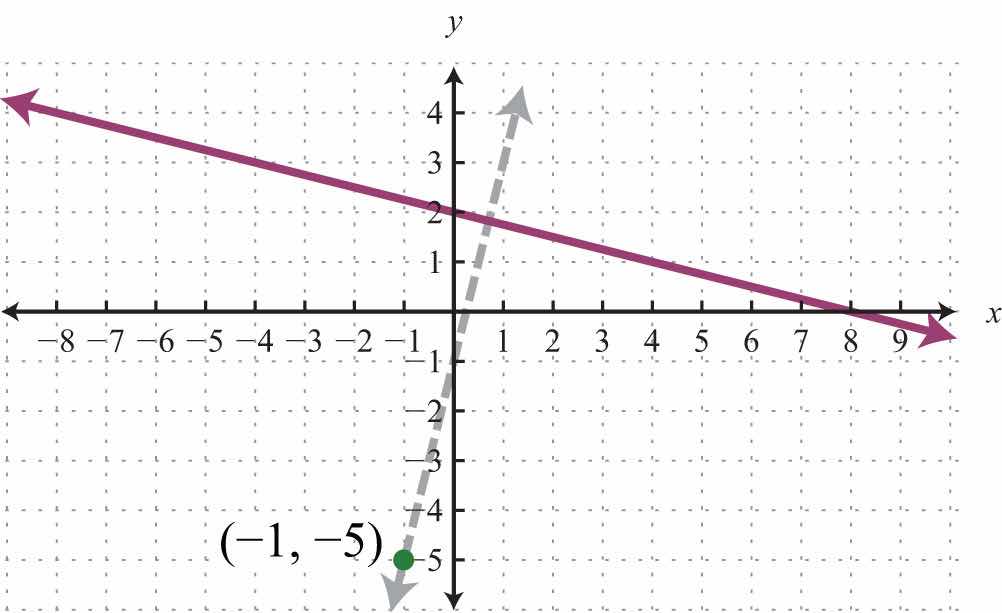 Geometrically, we see that the line , shown dashed below, passes through (−1, −5) and is perpendicular to the given line.