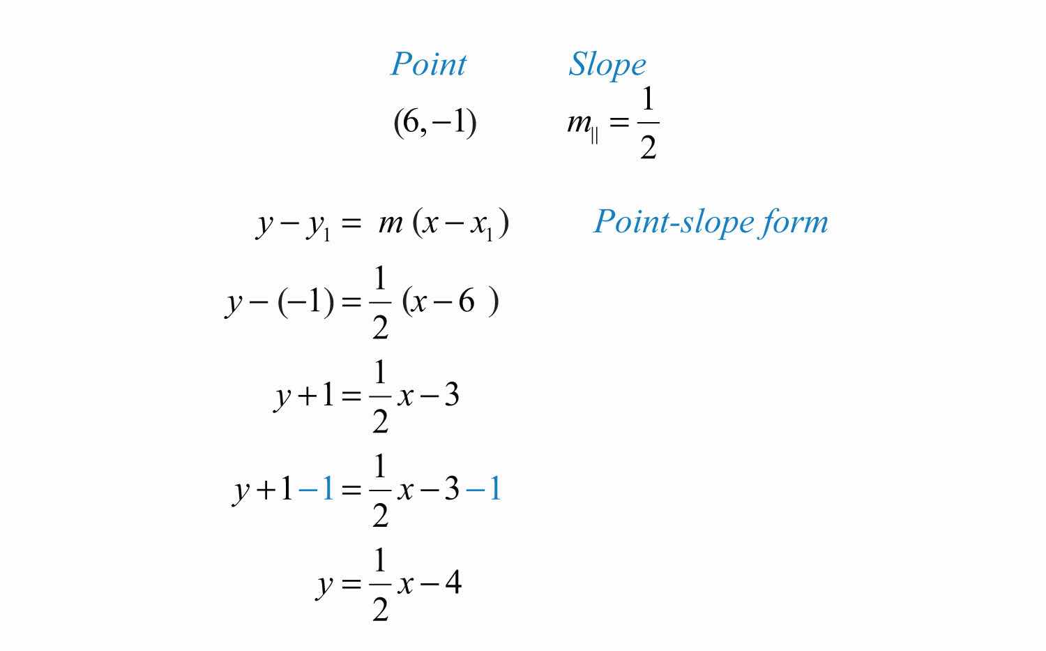 Example 3: Find the equation of the line passing through (6, −1) and parallel to .