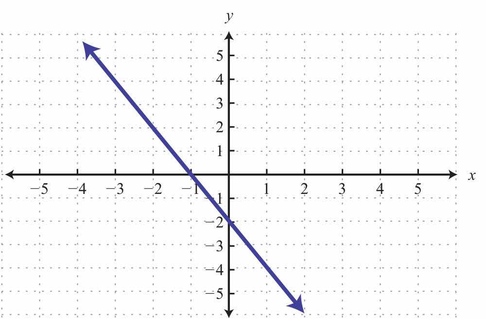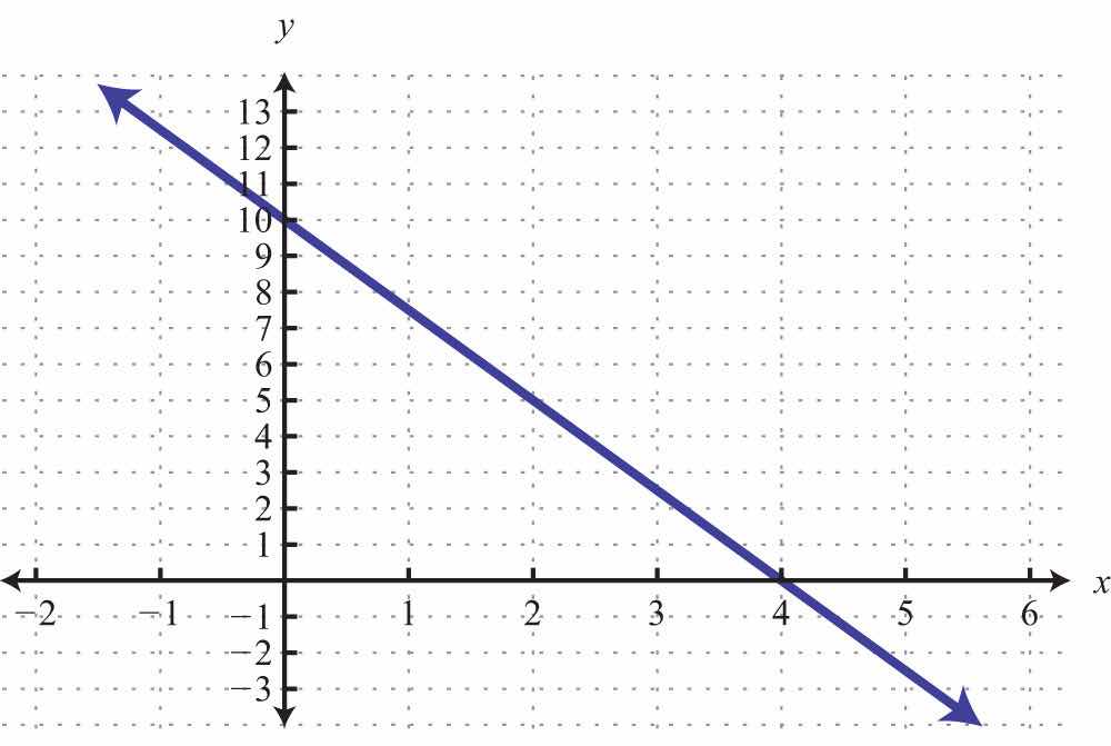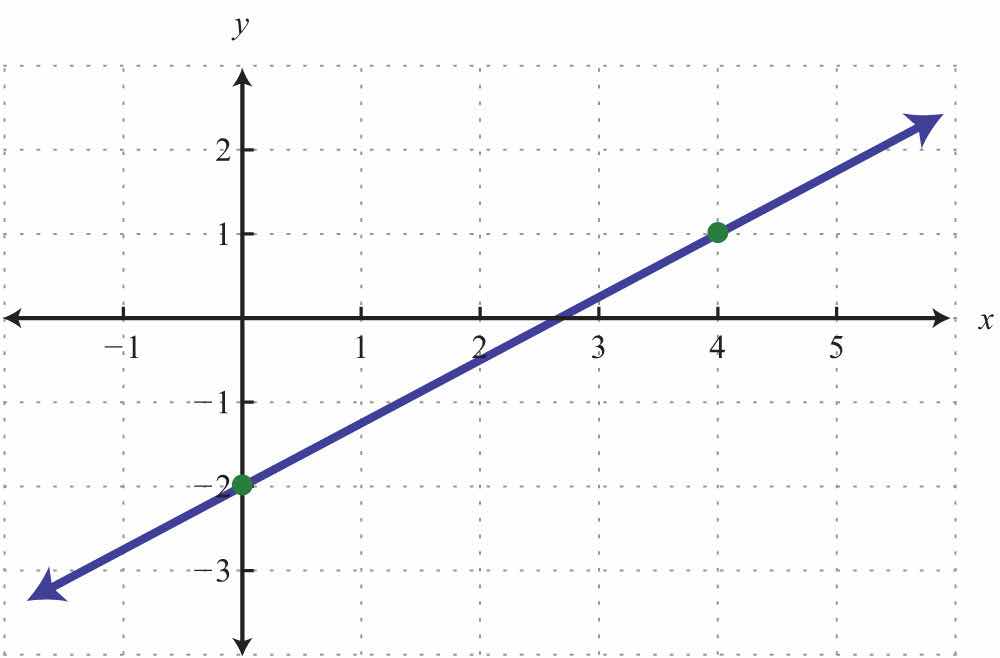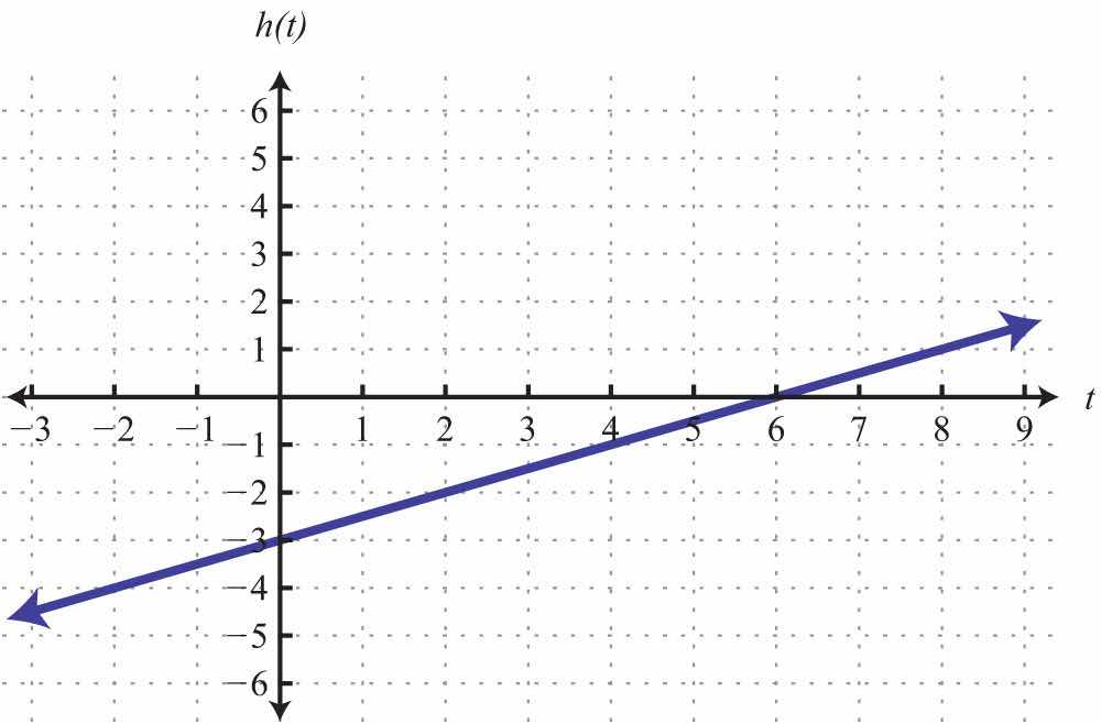 Solution: From the function, we see that b = 6 and thus the y-intercept is (0, 6). Also, we can see that the slope is . Starting from the y-intercept, mark a second point down 5 units and right 3 units.