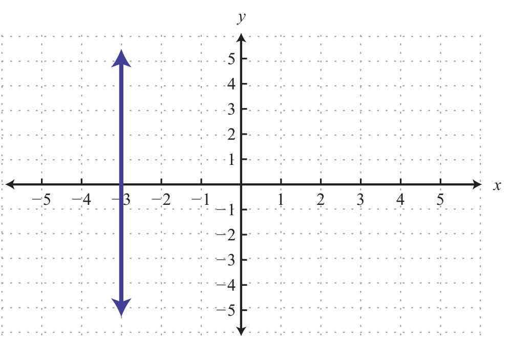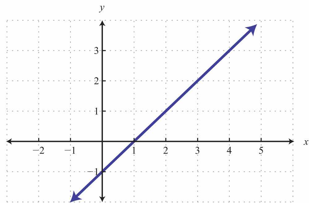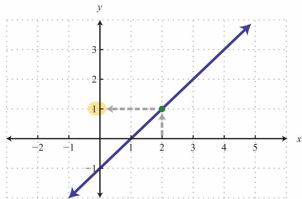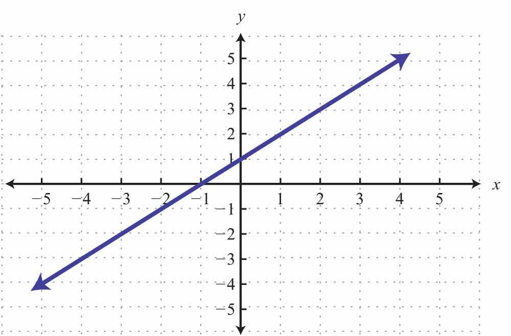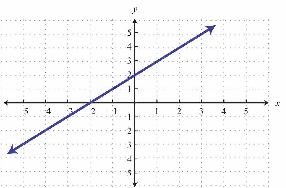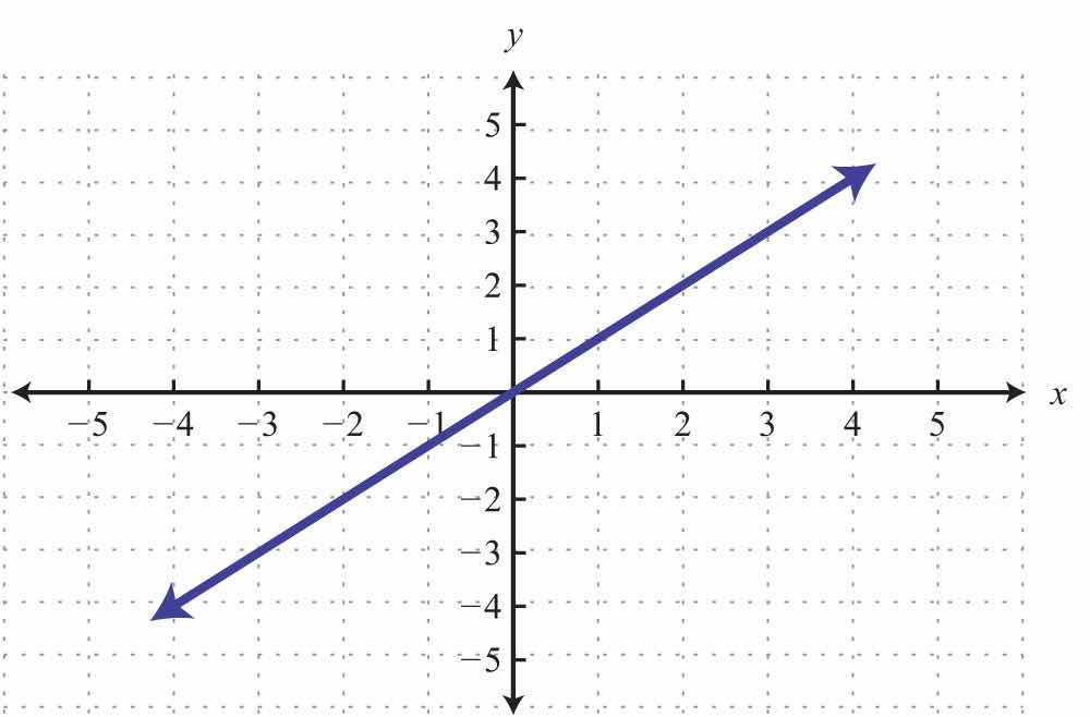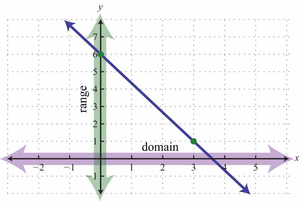 The graph is a relation since it represents the infinite set of ordered pair solutions to . The domain is the set of all x-values, and in this case consists of all real numbers. The range is the set of all possible y-values, and in this case also consists of all real numbers. Furthermore, the graph is a function because for each x-value there is only one corresponding y-value. In fact, any nonvertical or nonhorizontal line is a function with domain and range consisting of all real numbers.