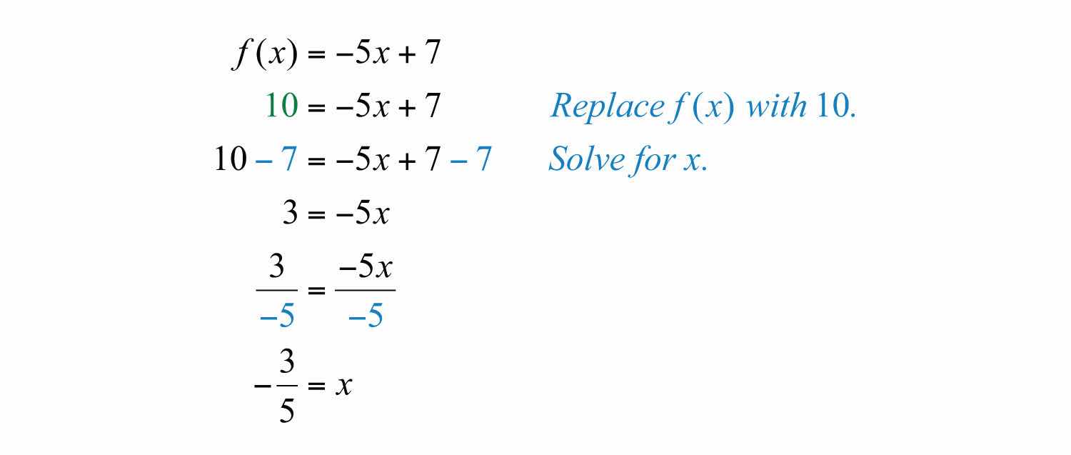 Therefore, a linear functionAny function that can be written in the form f(x) = mx + b. is any function that can be written in the form . In particular, we can write the following:
