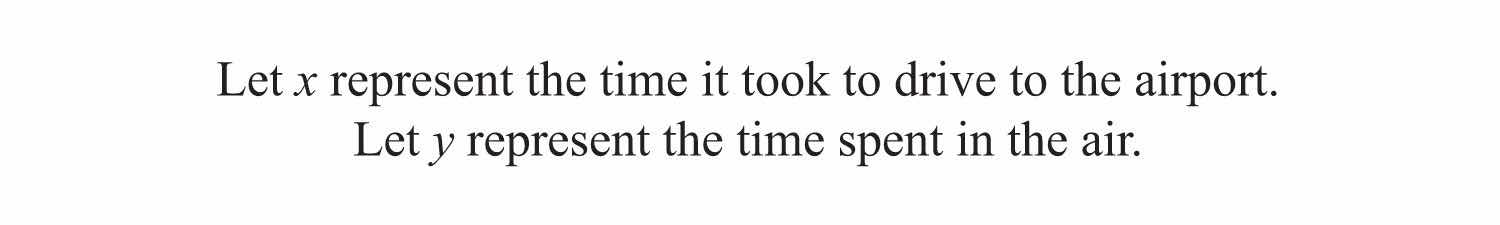 Solution: We are asked to find the time it takes her to drive to the airport; this indicates that time is the unknown quantity.