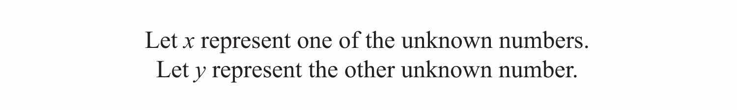 We now have the techniques needed to solve linear systems. For this reason, we are no longer limited to using one variable when setting up equations that model applications. If we translate an application to a mathematical setup using two variables, then we need to form a linear system with two equations.