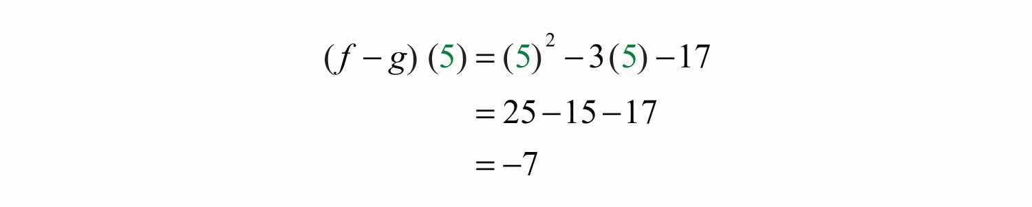 We may be asked to evaluate the sum or difference of two functions. We have the option to first find the sum or difference and use the resulting function to evaluate for the given variable, or to first evaluate each function and then find the sum or difference.