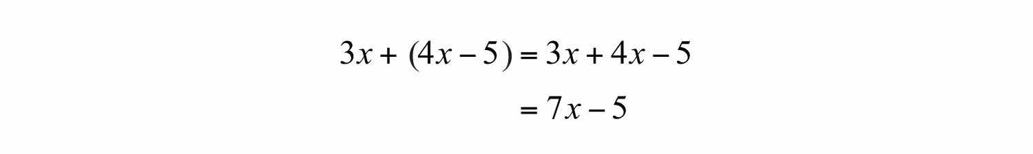 Solution: The property , which was derived using the distributive property, allows us to remove the parentheses so that we can add like terms.