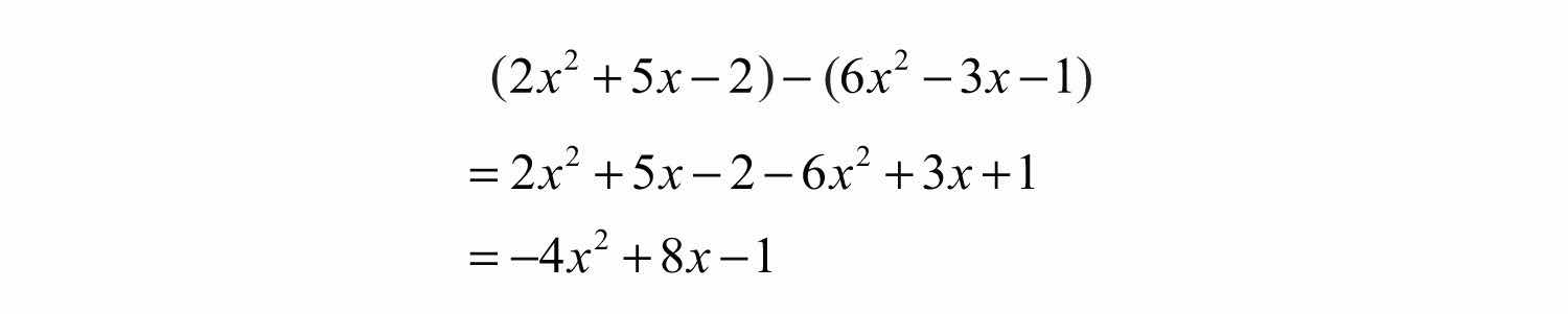 In other words, when subtracting an algebraic expression, we remove the parentheses by subtracting each term.