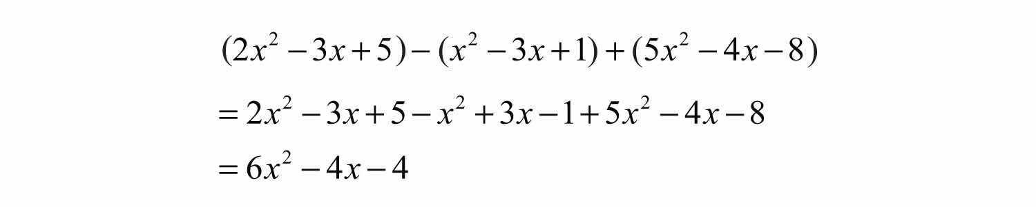 Solution: Apply the distributive property, remove the parentheses, and then combine like terms.