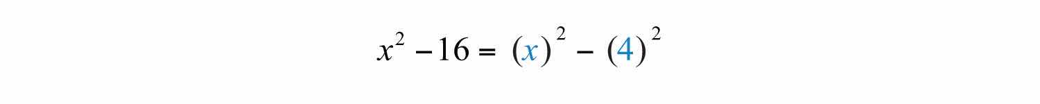Solution: The subtraction indicates that this is a difference. Furthermore, we recognize that the terms are squares.