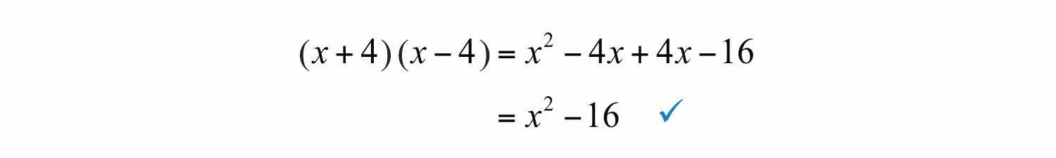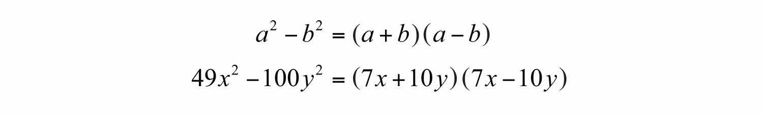 A binomial is a polynomial with two terms. We begin with our first special binomial called difference of squares where a and b represent algebraic expressions.: