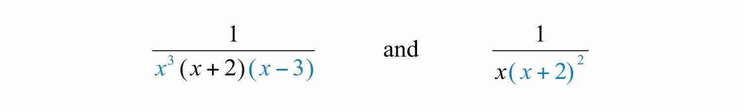 It is not always the case that the LCD is the product of the given denominators. Typically, the denominators are not relatively prime; thus determining the LCD requires some thought. Begin by factoring all denominators. The LCD is the product of all factors with the highest power. For example, given