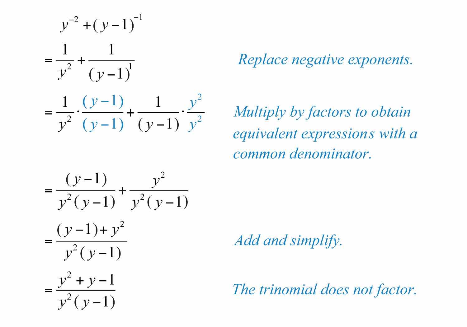 Solution: Recall that . We begin by rewriting the negative exponents as rational expressions.