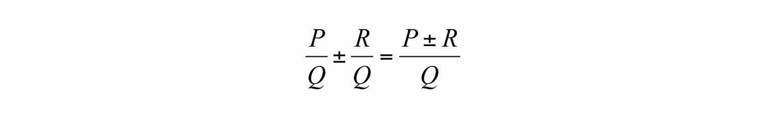 When working with rational expressions, the common denominator will be a polynomial. In general, given polynomials P, Q, and R, where , we have the following: