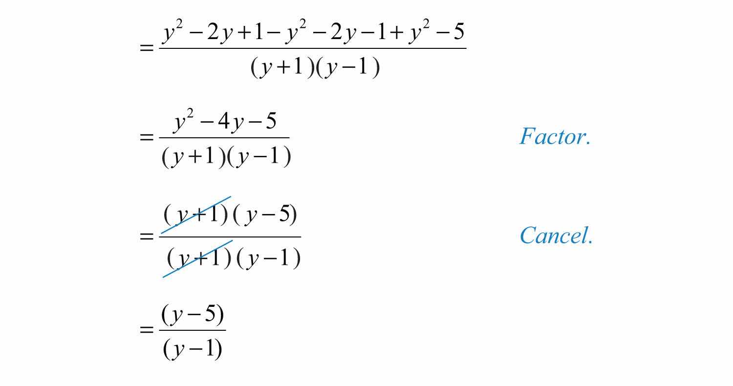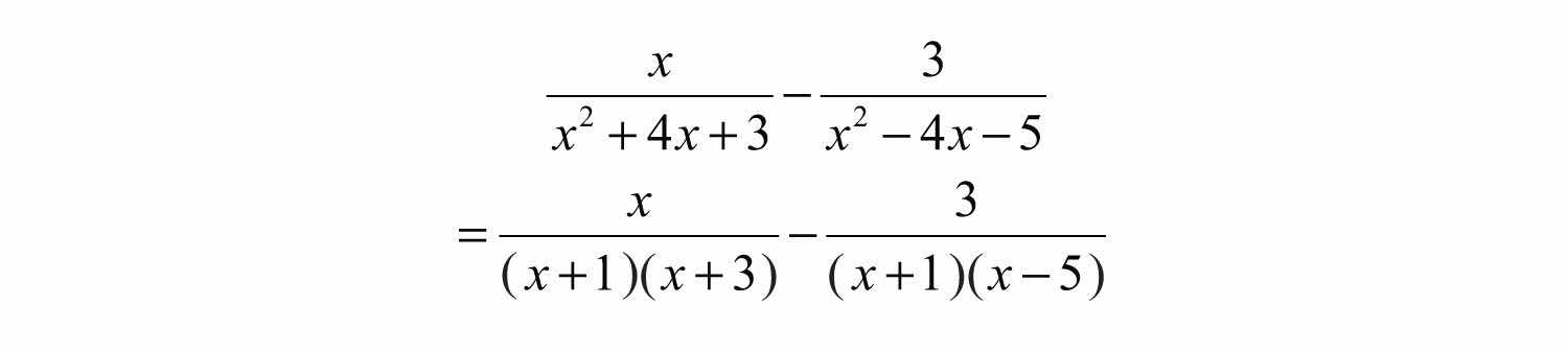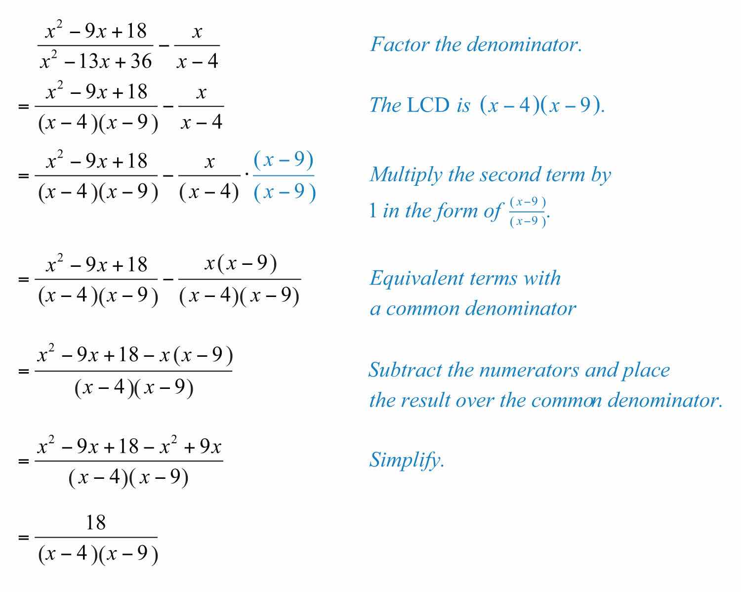 Solution: It is best not to factor the numerator, , because we will most likely need to simplify after we subtract.